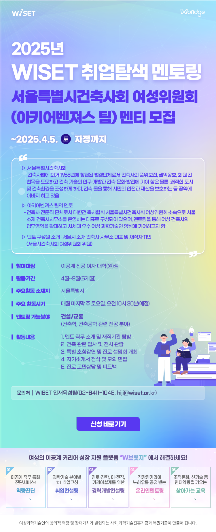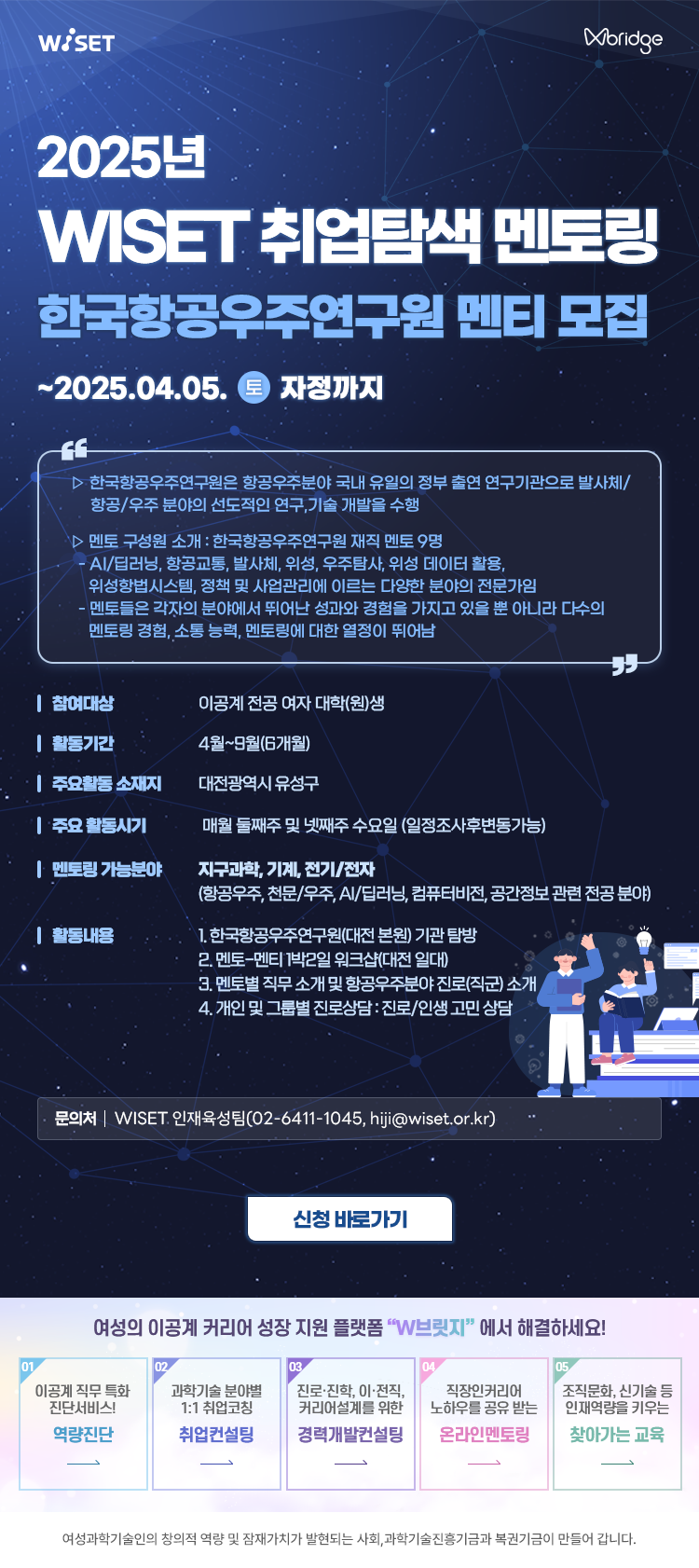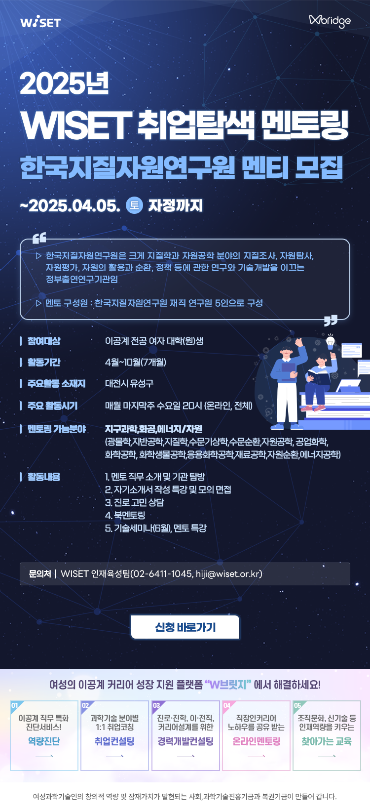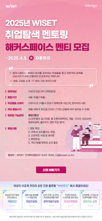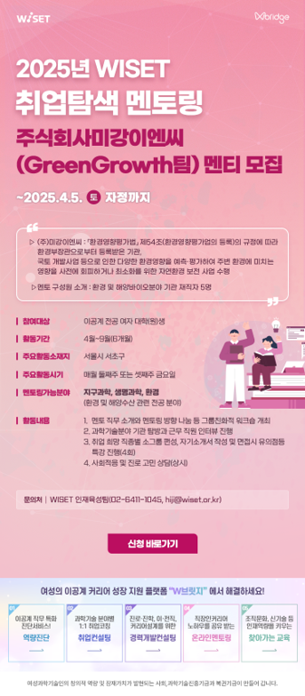 - 2025년 WISET 「취업탐색 멘토링」 참여 이공계 대학(원)생 멘티 모집