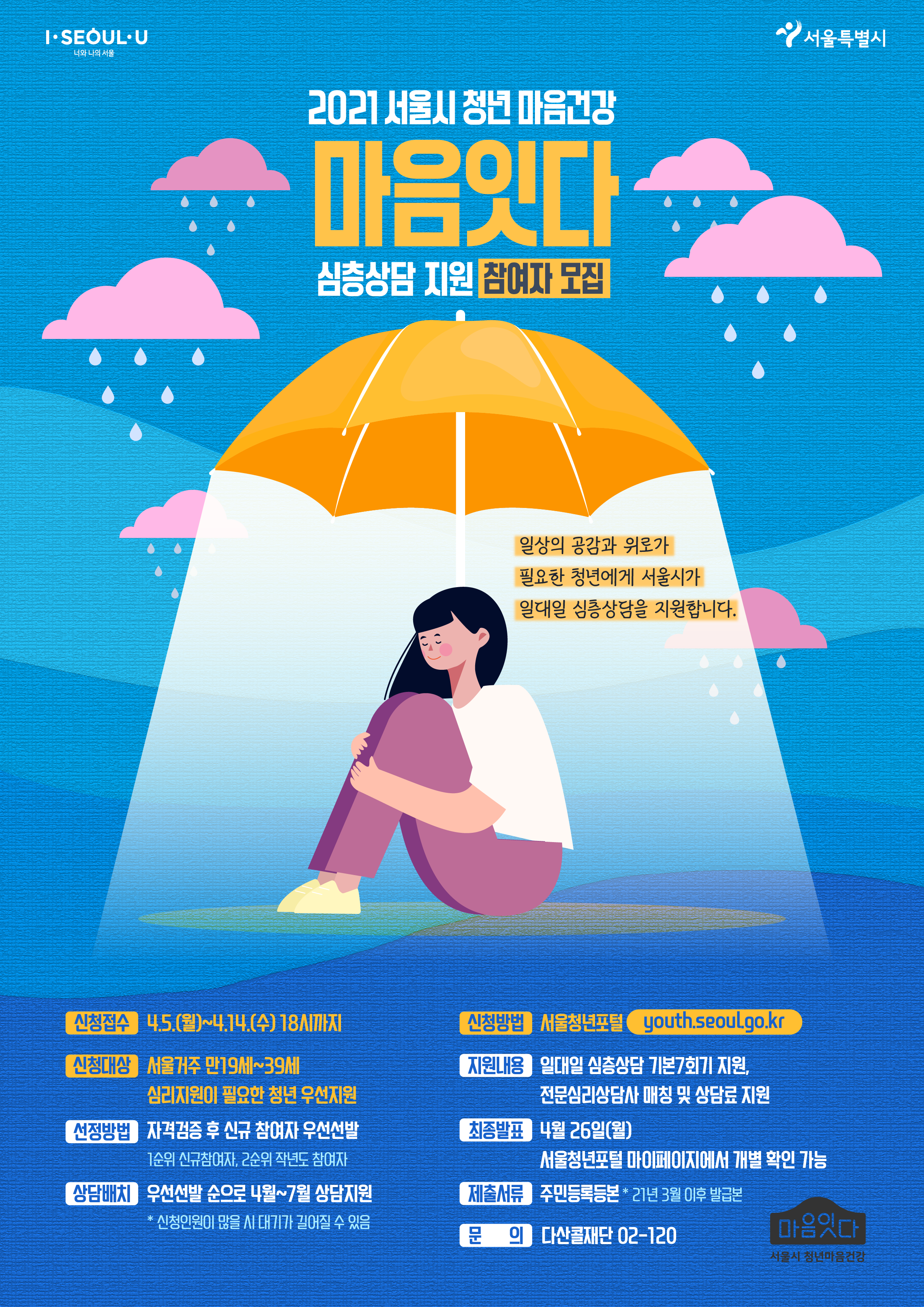 - [학생상담센터] 2021 서울시 청년 마음건강 심층상담 지원 참여자 모집