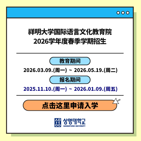 - Admission to the 2026 Spring Semester Korean Language Regular Program 2025.10.23