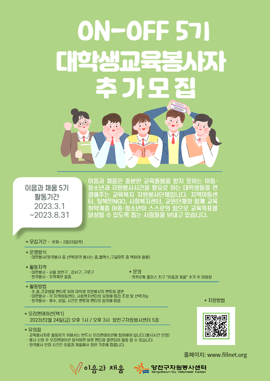 - [교육봉사] 이음과 채움 봉사활동 안내 (교봉 미인정)