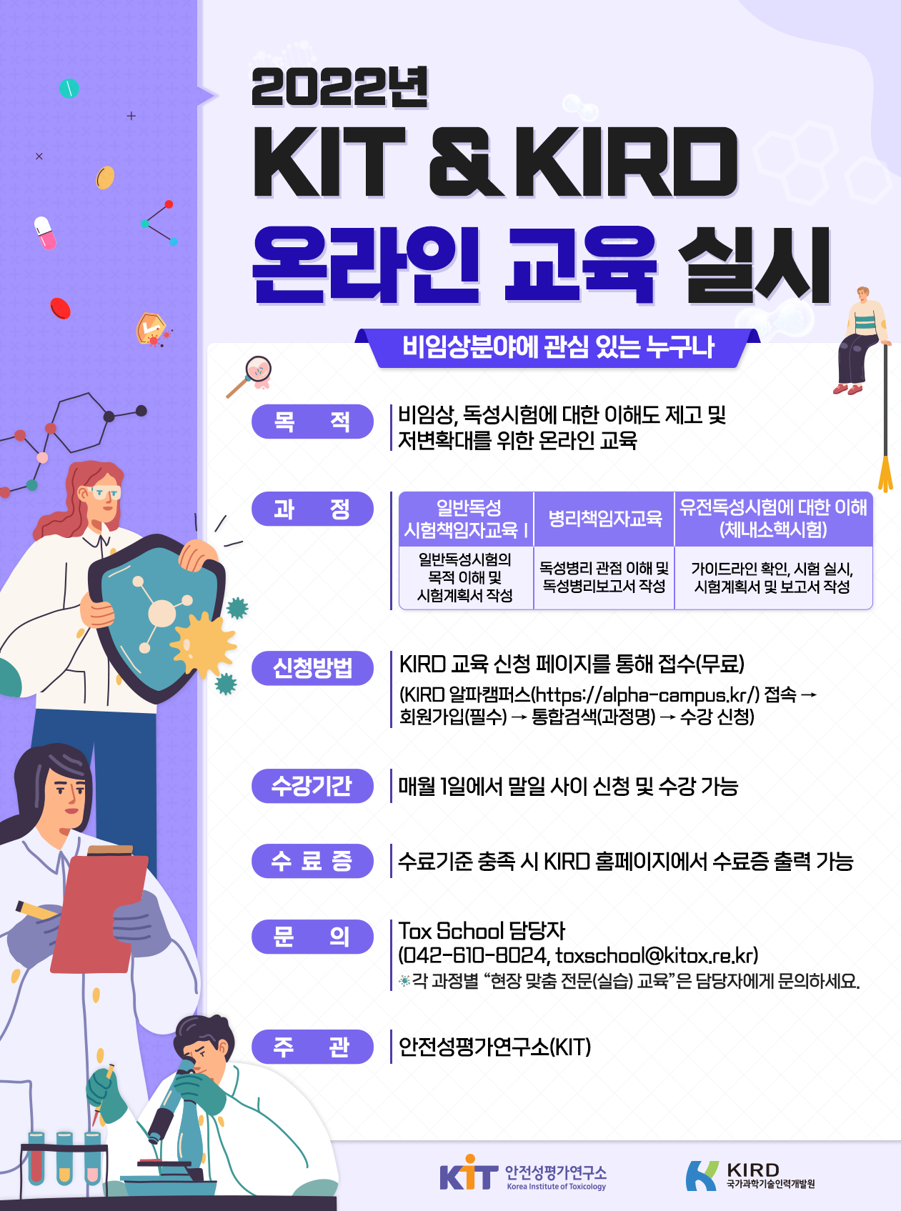- [안전성평가연구소] 2022년 KIT Tox School 온라인 교육 안내