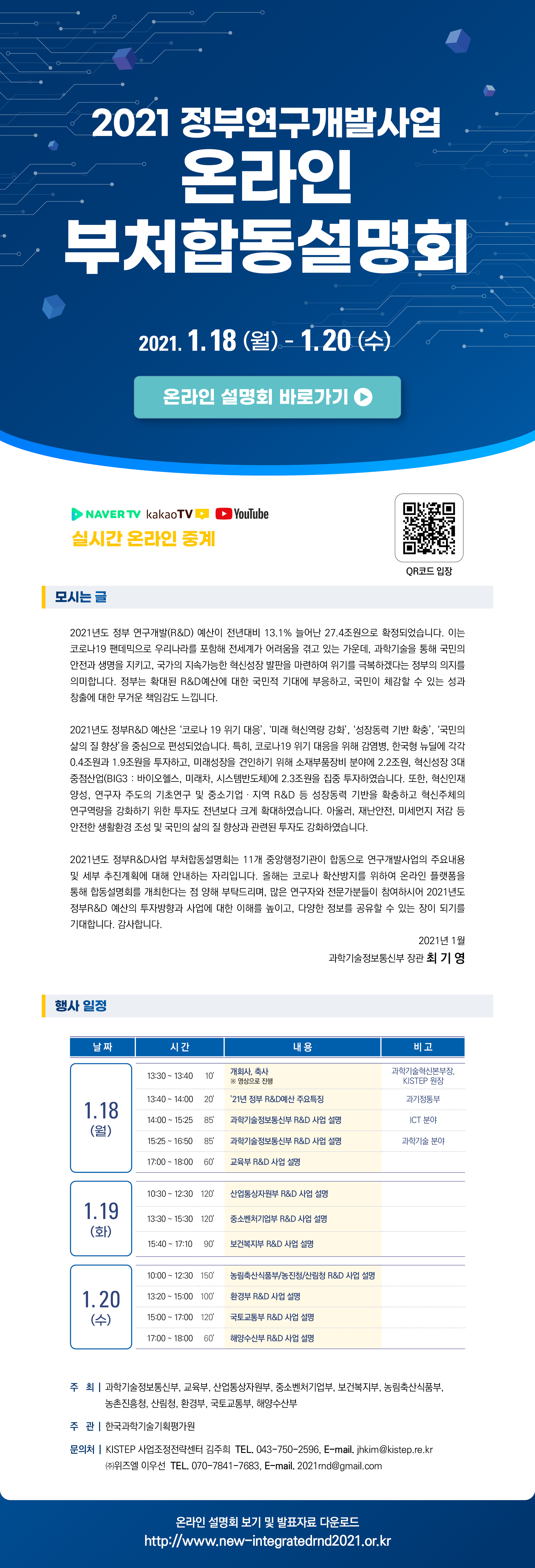 - 2021년 정부R&D사업 부처합동설명회 개최 안내