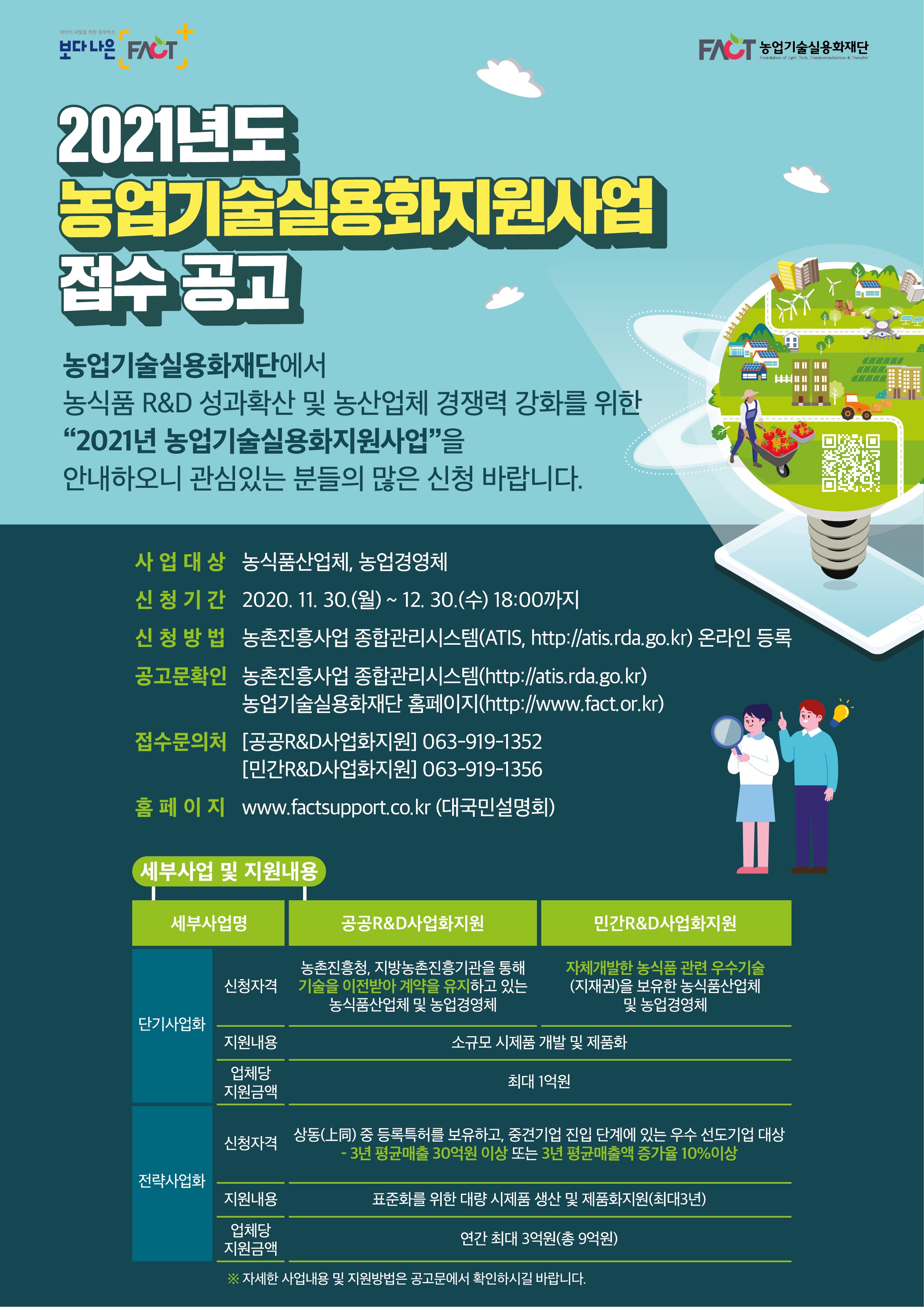 - [농업기술실용화재단] 2021년 농업기술실용화지원사업 모집공고 안내