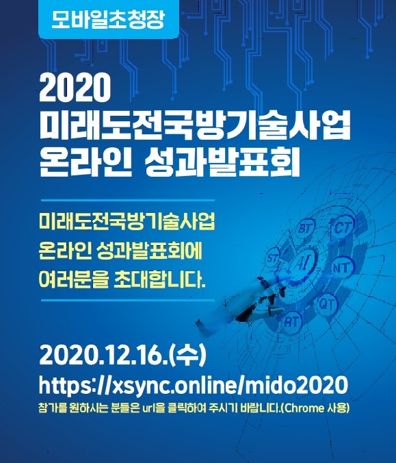 - [일반공지] [국방과학연구소] 2020년도 미래도전국방기술사업 온라인 성과발표회 안내
