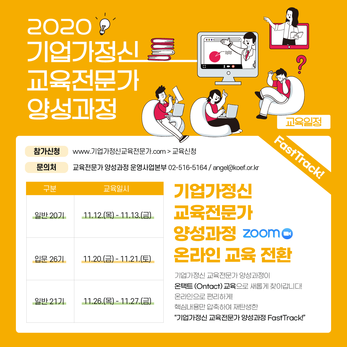 - [일반공지] [한국청년기업가정신재단] 「2020년도 기업가정신 교육전문가 양성과정」온라인교육 참가자 모집 안내