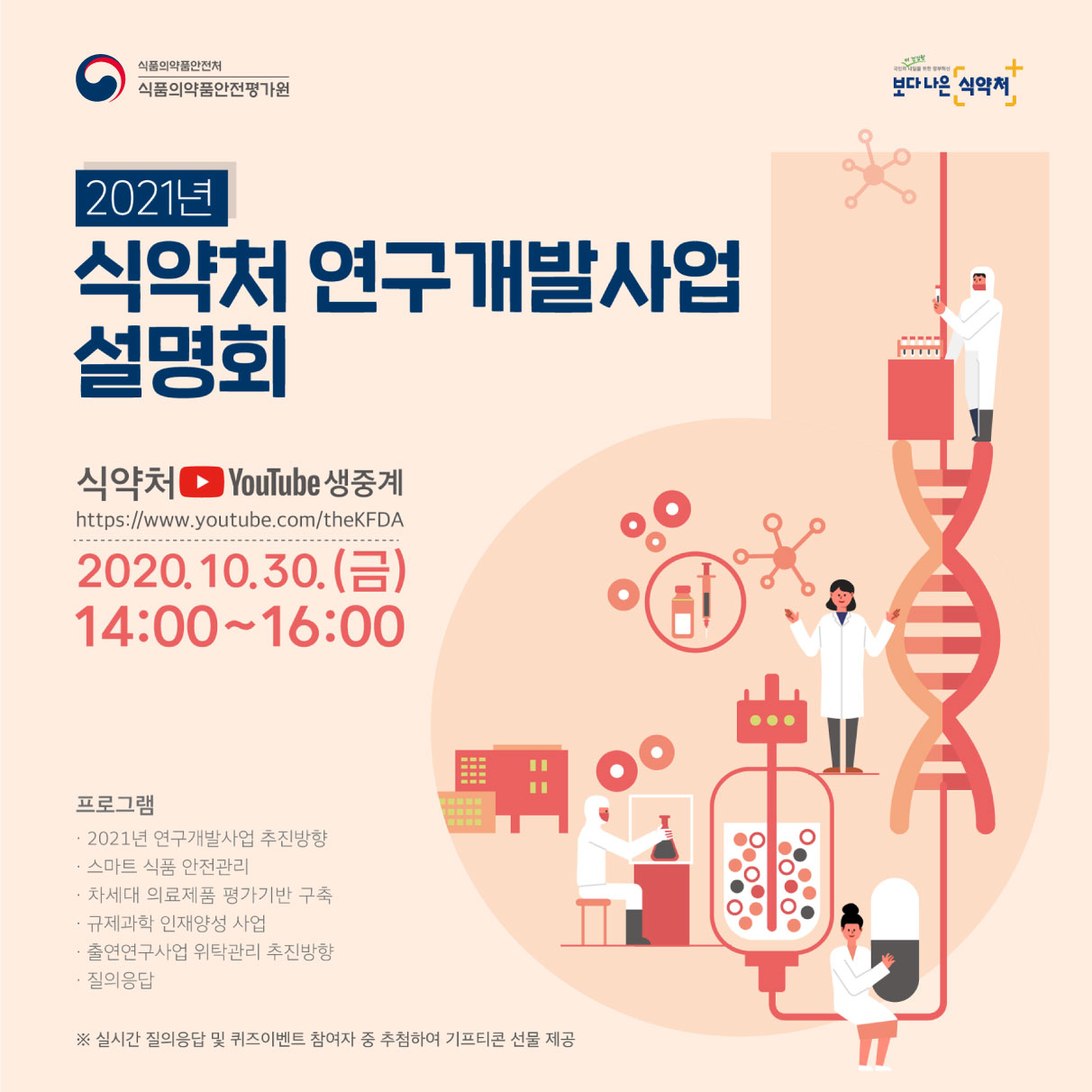 - [일반공지] [식품의약품안전평가원] 2021년 식약처 연구개발사업 온라인 설명회 개최 안내