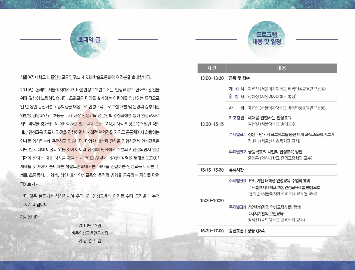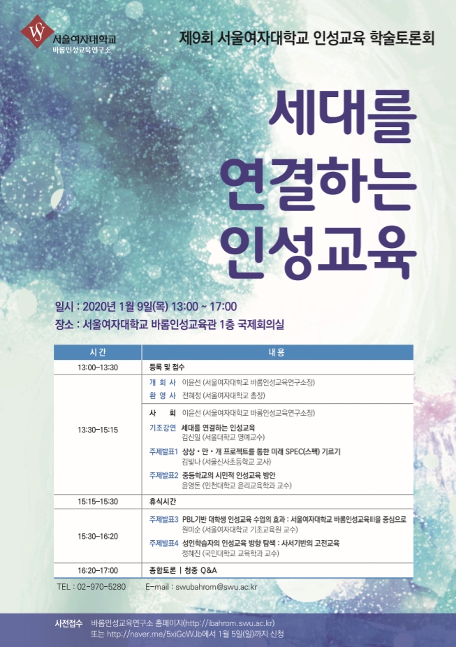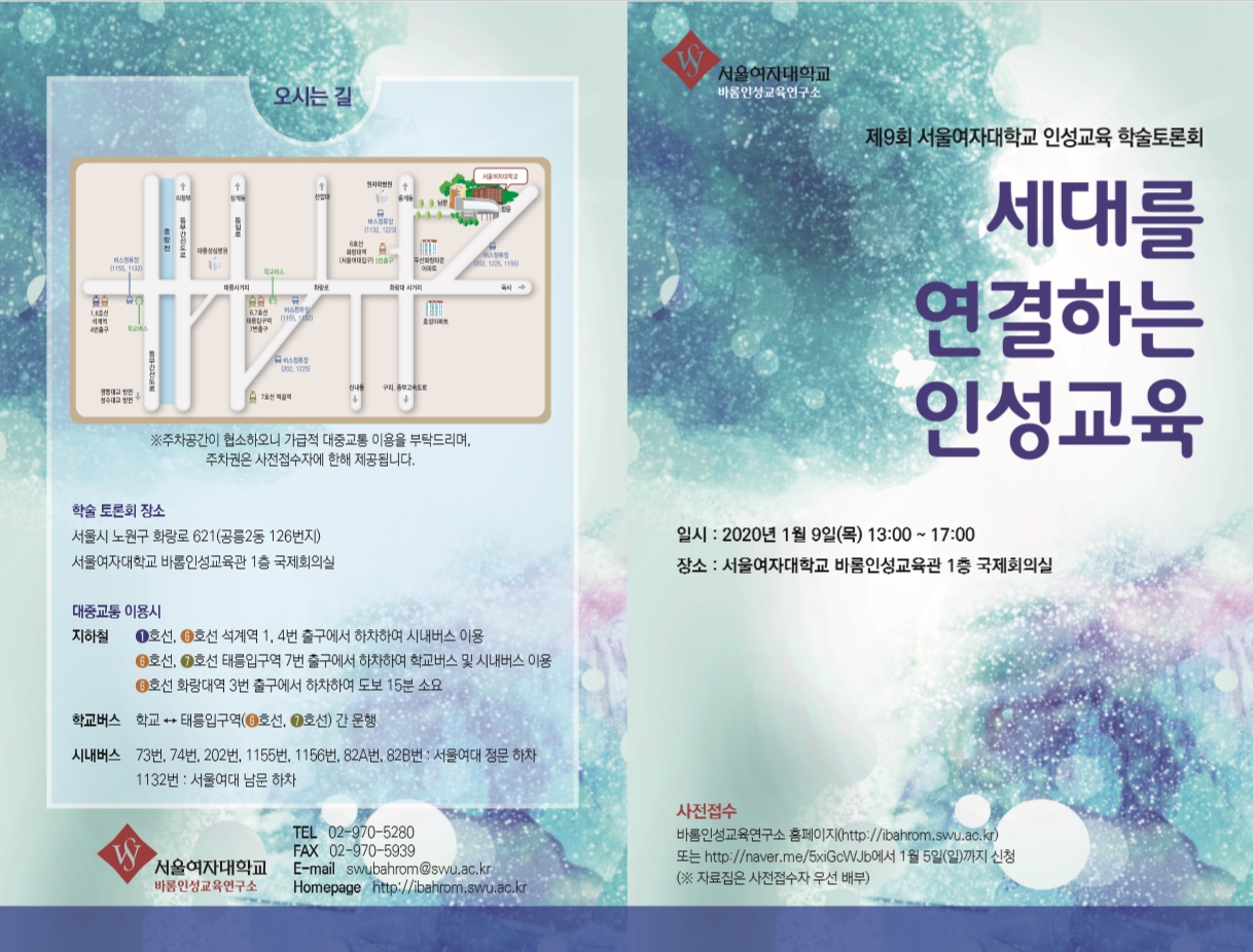 - [서울여자대학교] 제9회 서울여자대학교 인성교육 학술토론회 개최 안내