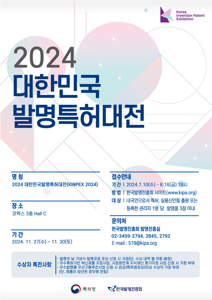 - [한국발명진흥회] 2024 대한민국발명특허대전 출품신청 안내
