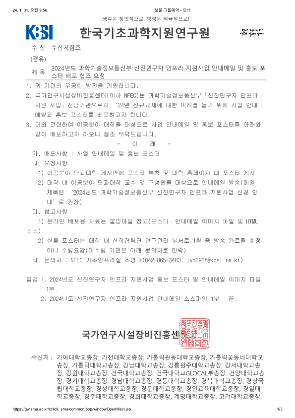 - [한국기초과학지원연구원] 2024년도 과학기술정보통신부 신진연구자 인프라 지원사업 안내