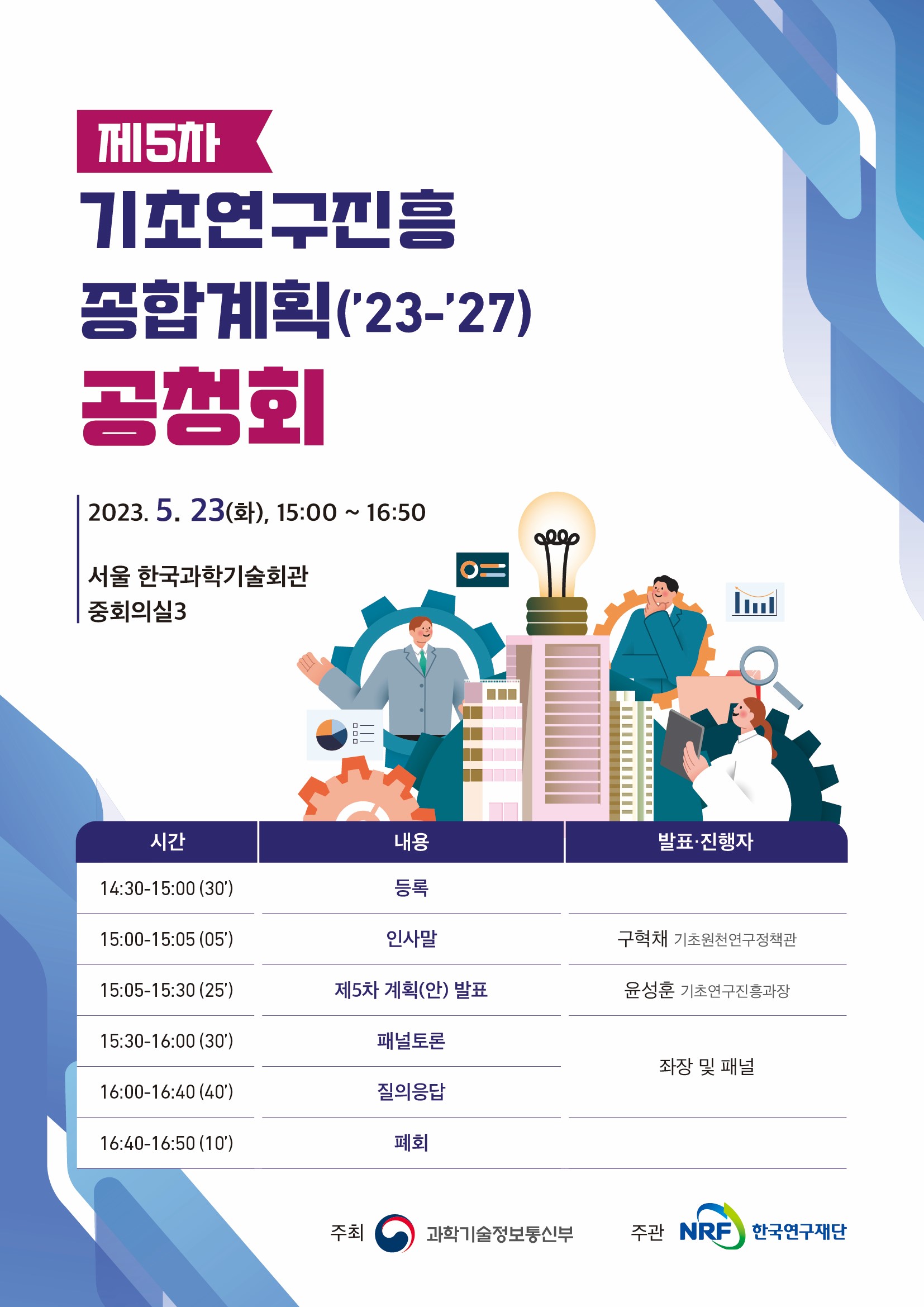 - (한국연구재단)제5차 기초연구진흥종합계획(2023~2027) 공청회 개최 안내