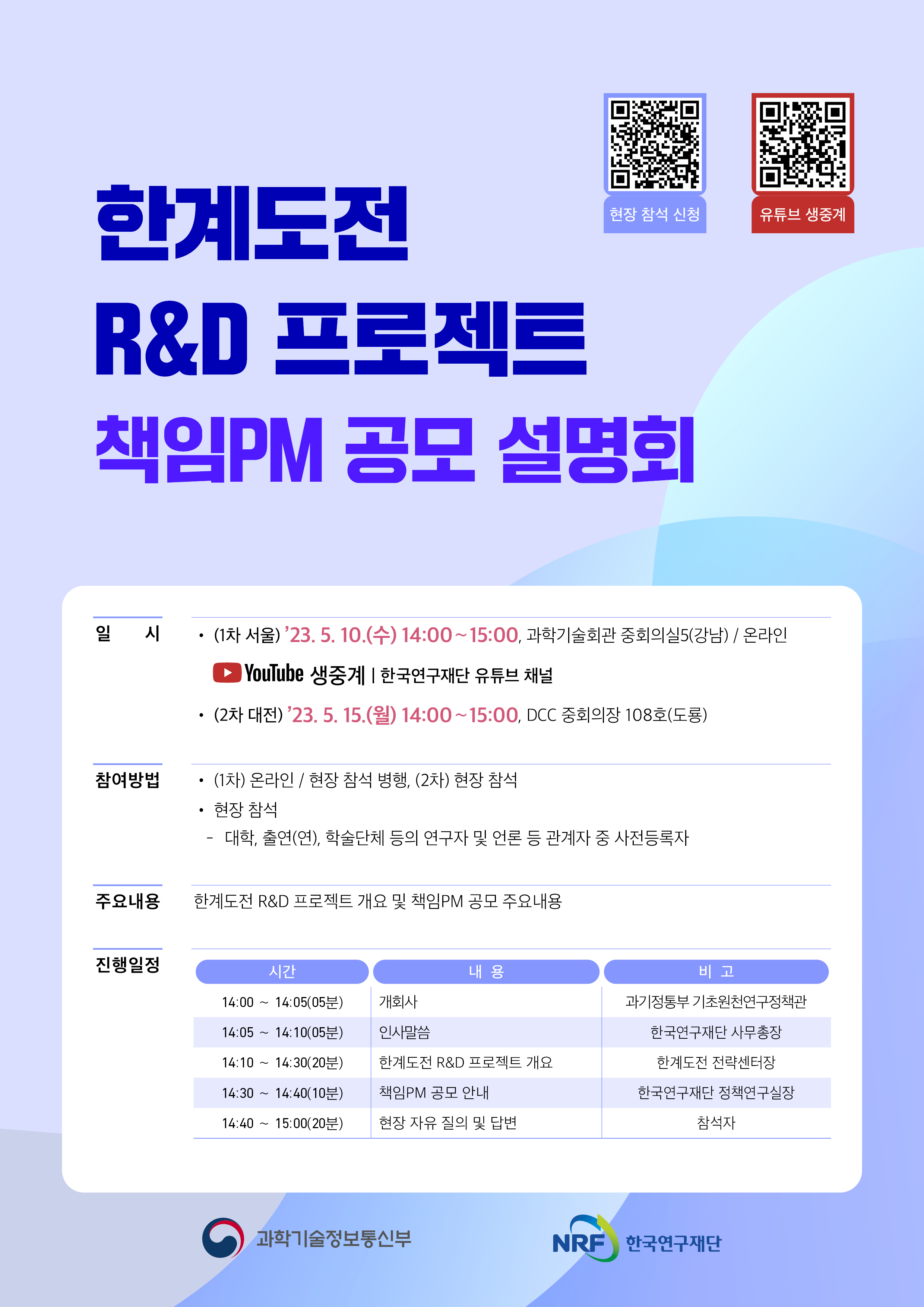 - (한국연구재단)『한계도전 R&D 프로젝트』 책임PM 공모 설명회 개최