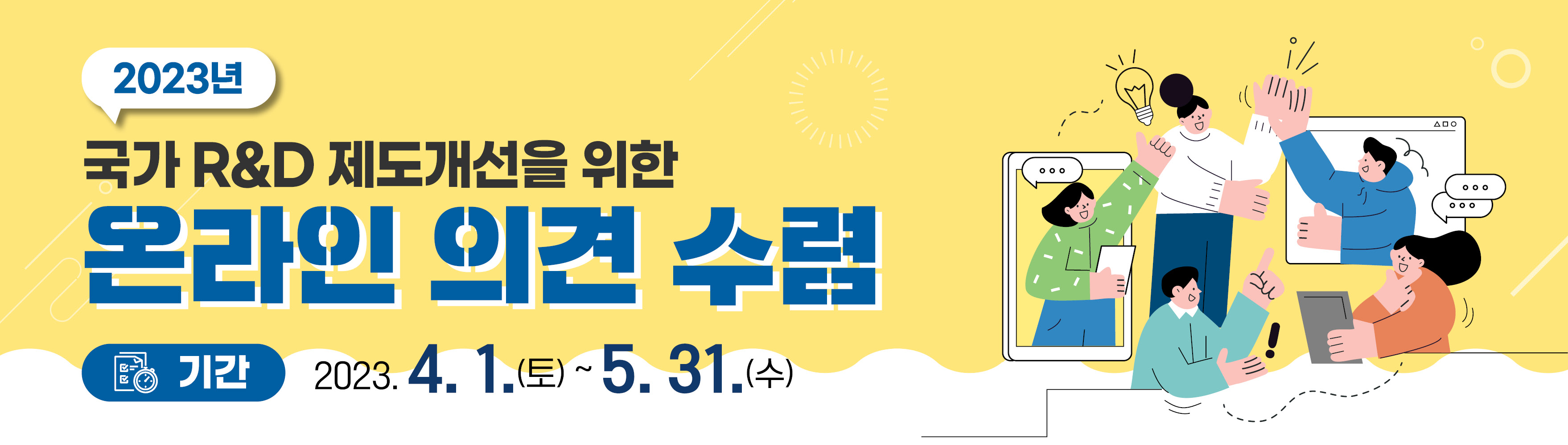 - (한국과학기술기획평가원) 2023년도 국가 R&D 제도개선 온라인 의견수렴 홍보