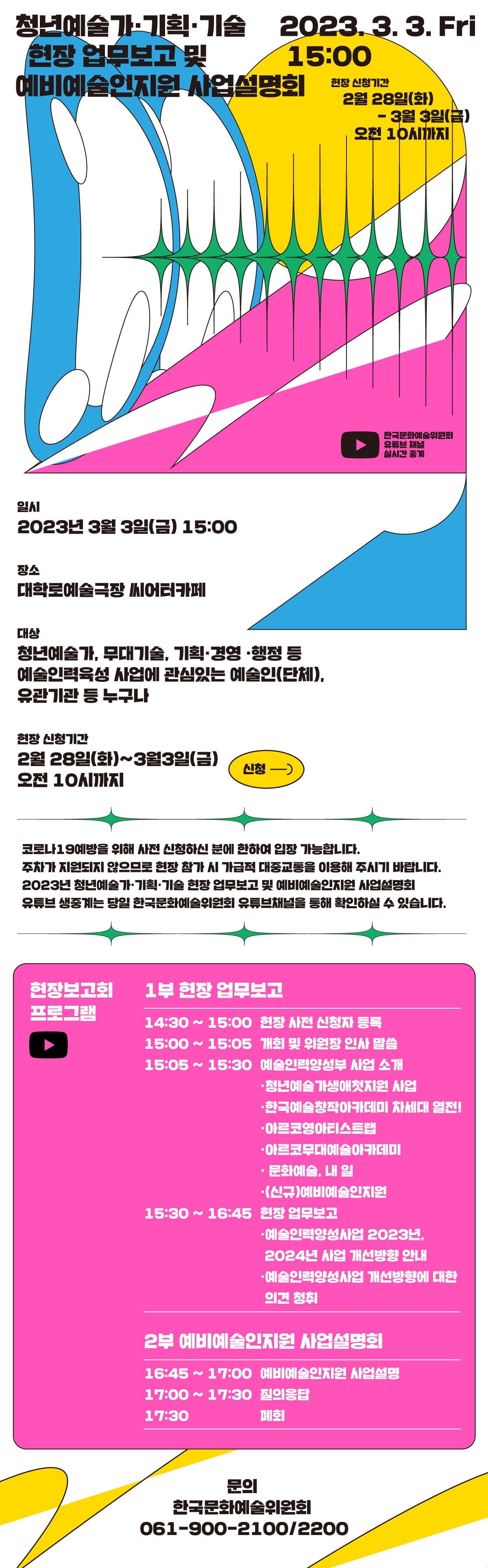 - [일반공지] (한국문화예술위원회)예비예술인지원 사업설명회 개최 안내