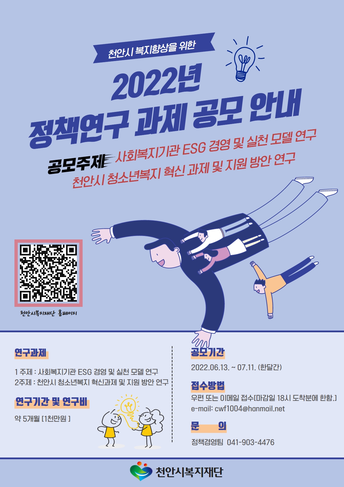 - [재단법인천안시복지재단] 2022년 천안시복지재단 정책연구 과제 공모 안내