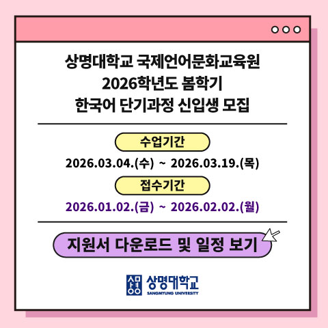 - Admission to the 2026 Spring Semester Korean Language Regular Program 2025.10.23