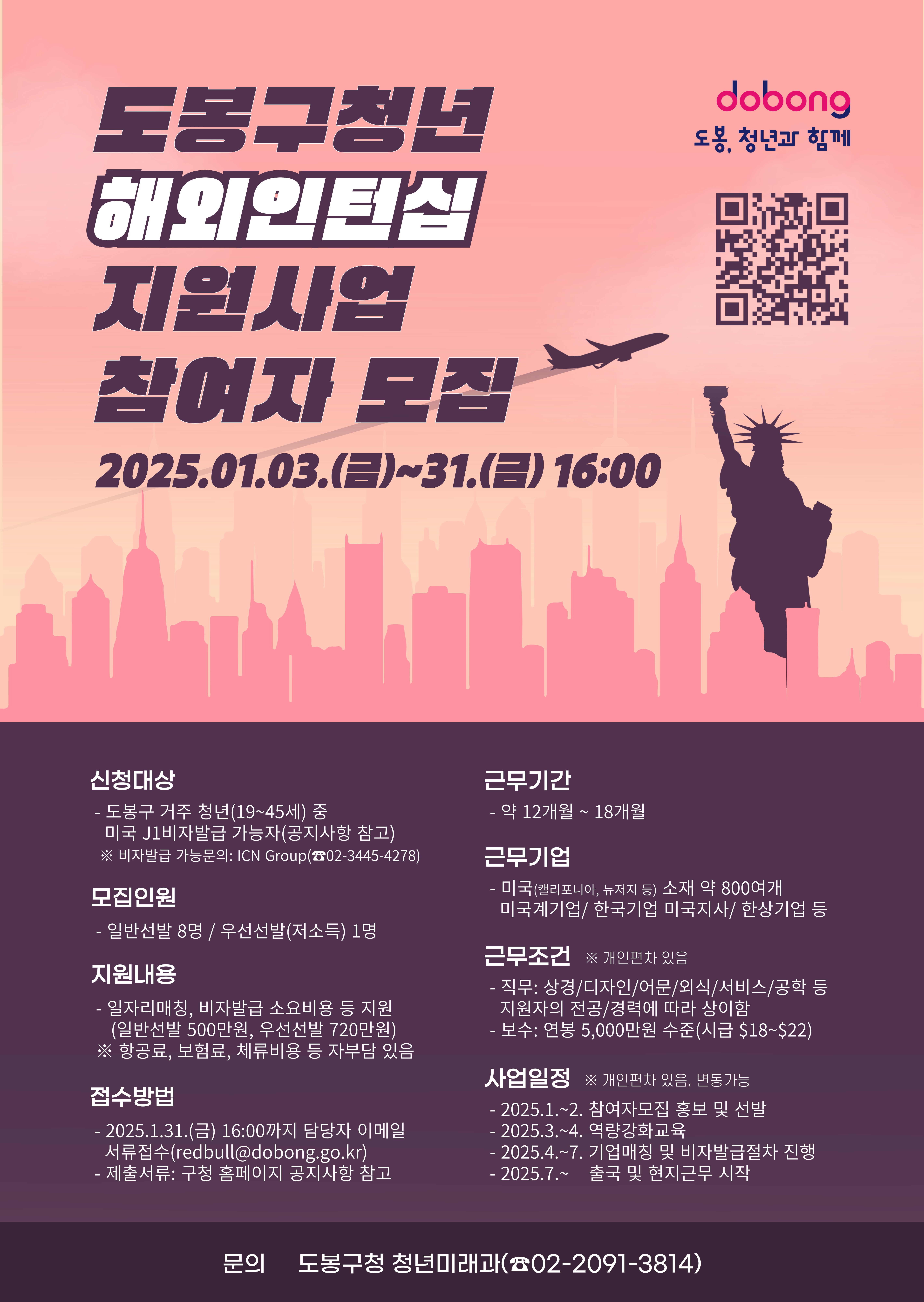 | 상명 [진로취업] | 2025 도봉청년 해외인턴십 지원사업 참여자 모집 안내(대학교) |