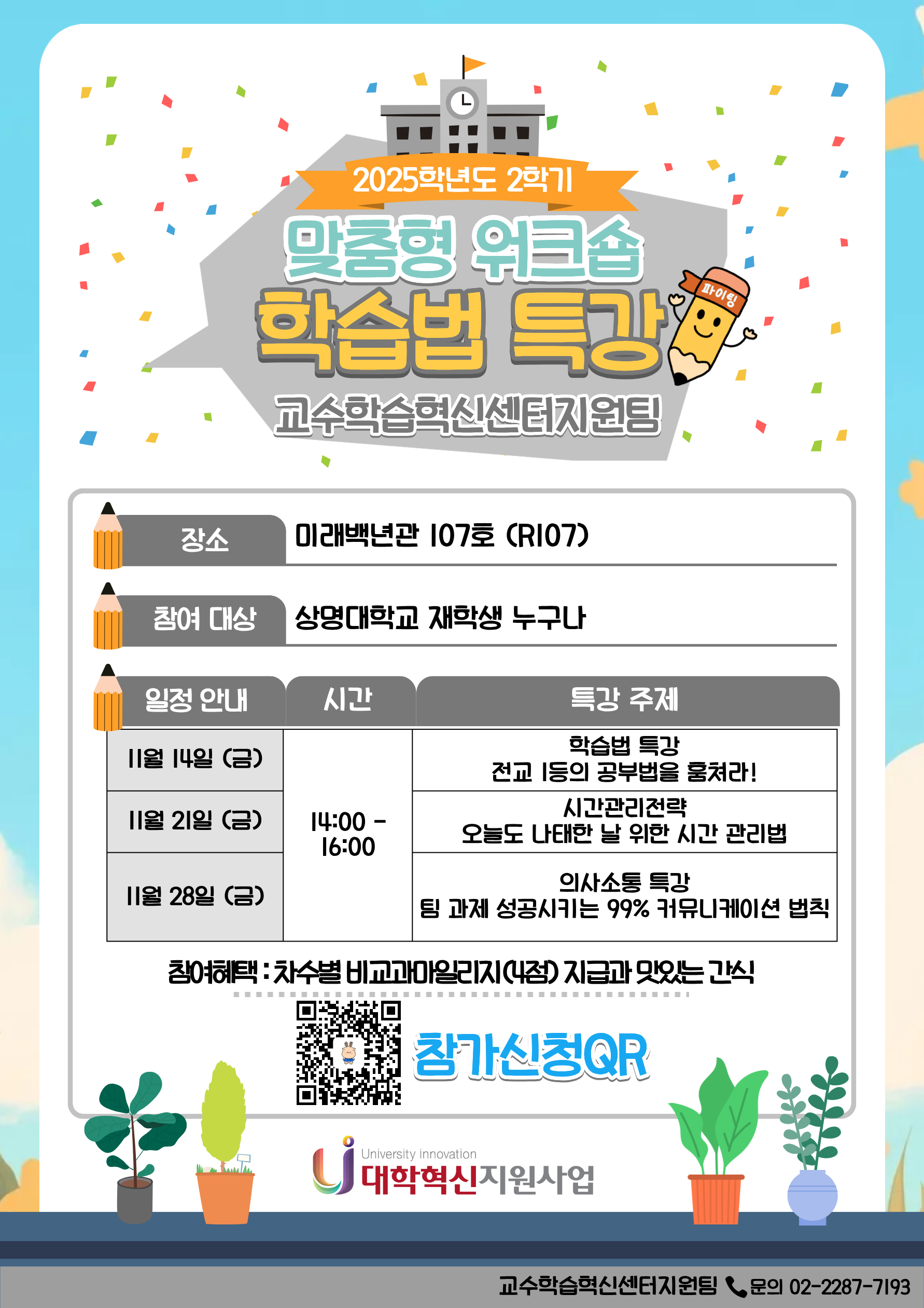 | 서울 [비교과] | [교수학습혁신센터지원팀(서울)]2025학년도 2학기 맞춤형 워크숍_학습법 특강 |