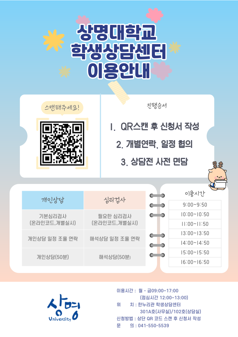 | 천안 [학생생활] | [학생상담센터(천안)] 개인상담 및 심리검사 신청 안내 |