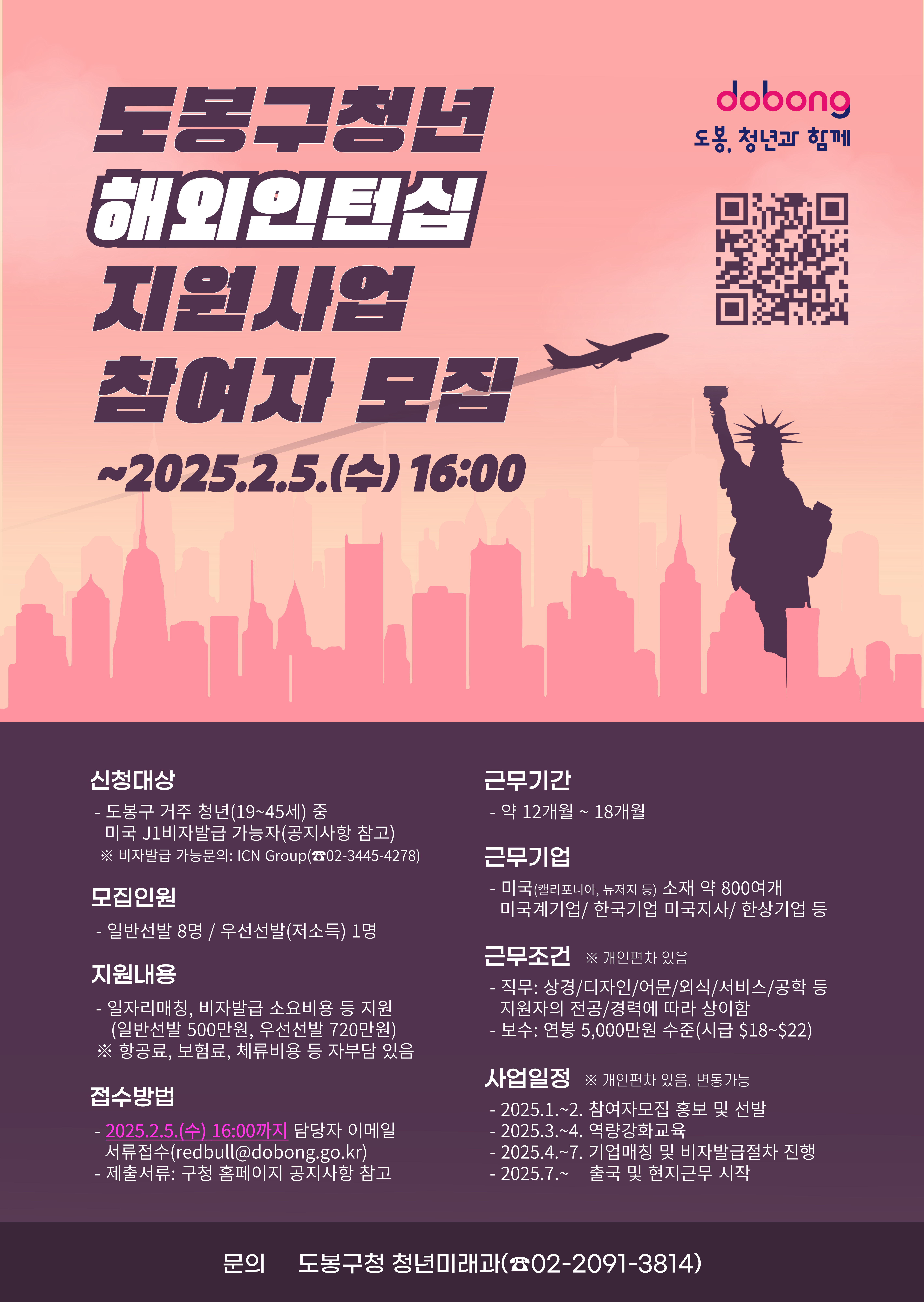 | 상명 [진로취업] | 2025 도봉청년 해외인턴십 지원사업 참여자 모집 |