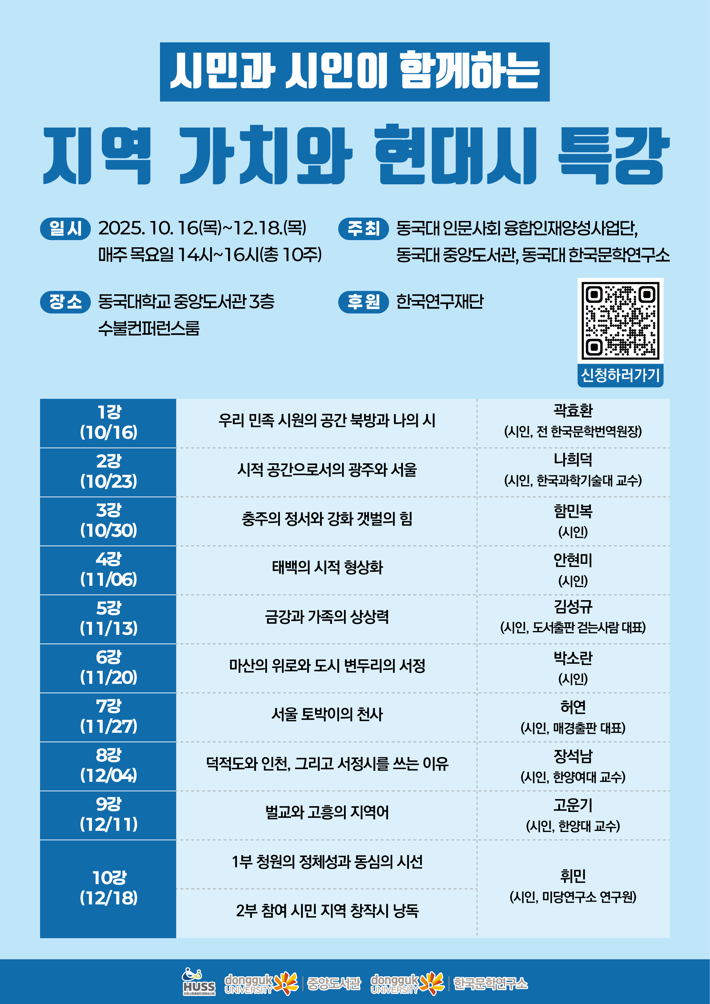 | 상명 [비교과] | [HUSS 인문사회융합인재양성사업단] '시민과 시인이 함께하는 지역 가치와 현대시 특강' 안내 |
