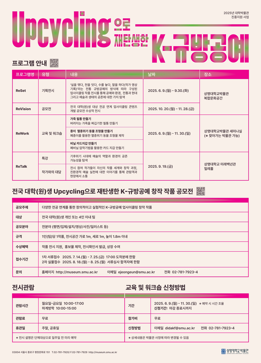 | 상명 [일반] | [박물관] 2025년 대학박물관 진흥지원 사업 <Upcycling으로 재탄생한 K-규방공예> 사업 안내 |