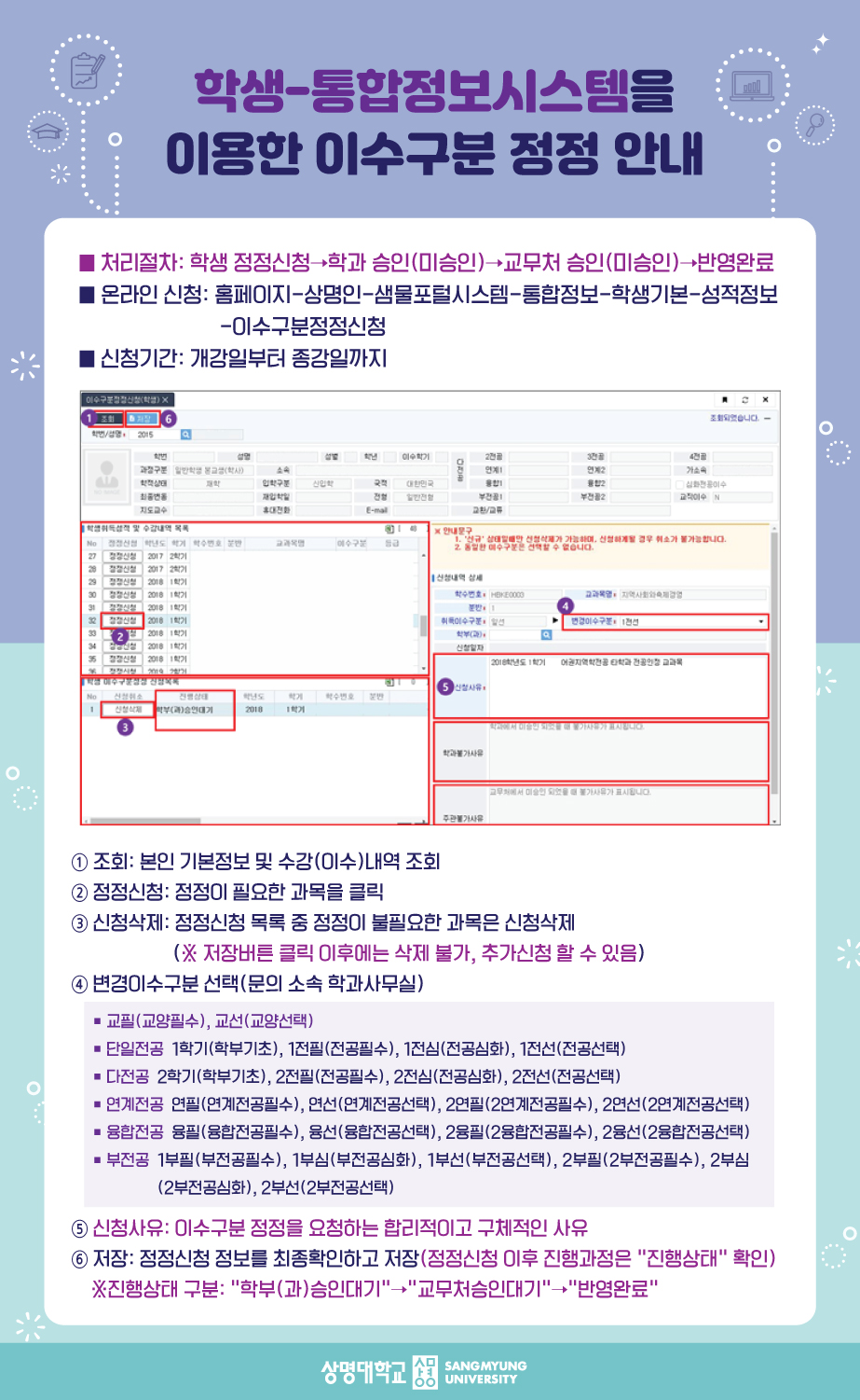 - [학사] [학사운영팀] 2025학년도 제2학기 이수구분 정정 신청 안내
