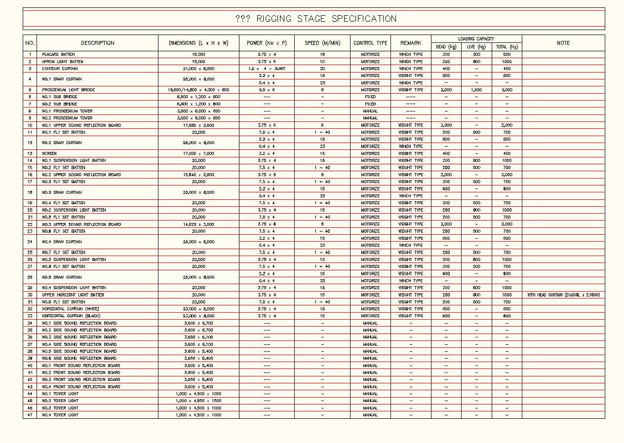 무대장치 스펙