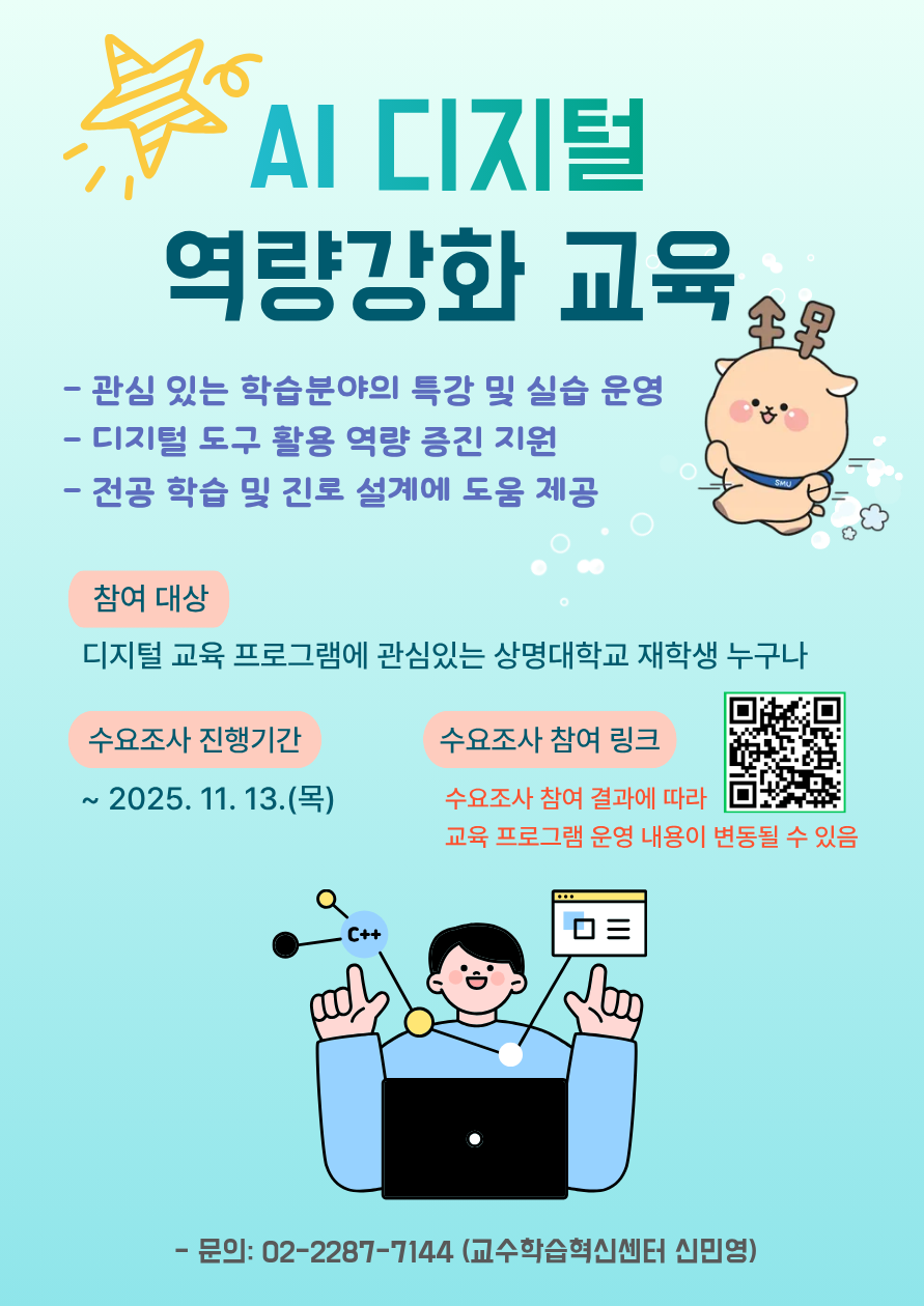 서울 [비교과] [교수학습혁신센터(서울)] 2025학년도 2학기 AI디지털 역량강화 교육 프로그램_수요조사 -