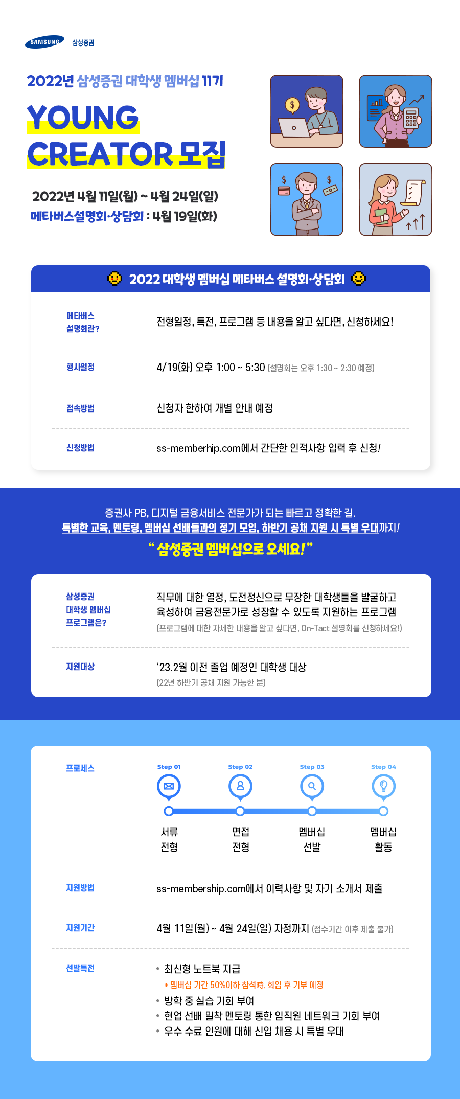- [인턴쉽] [삼성증권] 2022년 대학생 멤버십 Young Creator 11기 모집(~4/24)