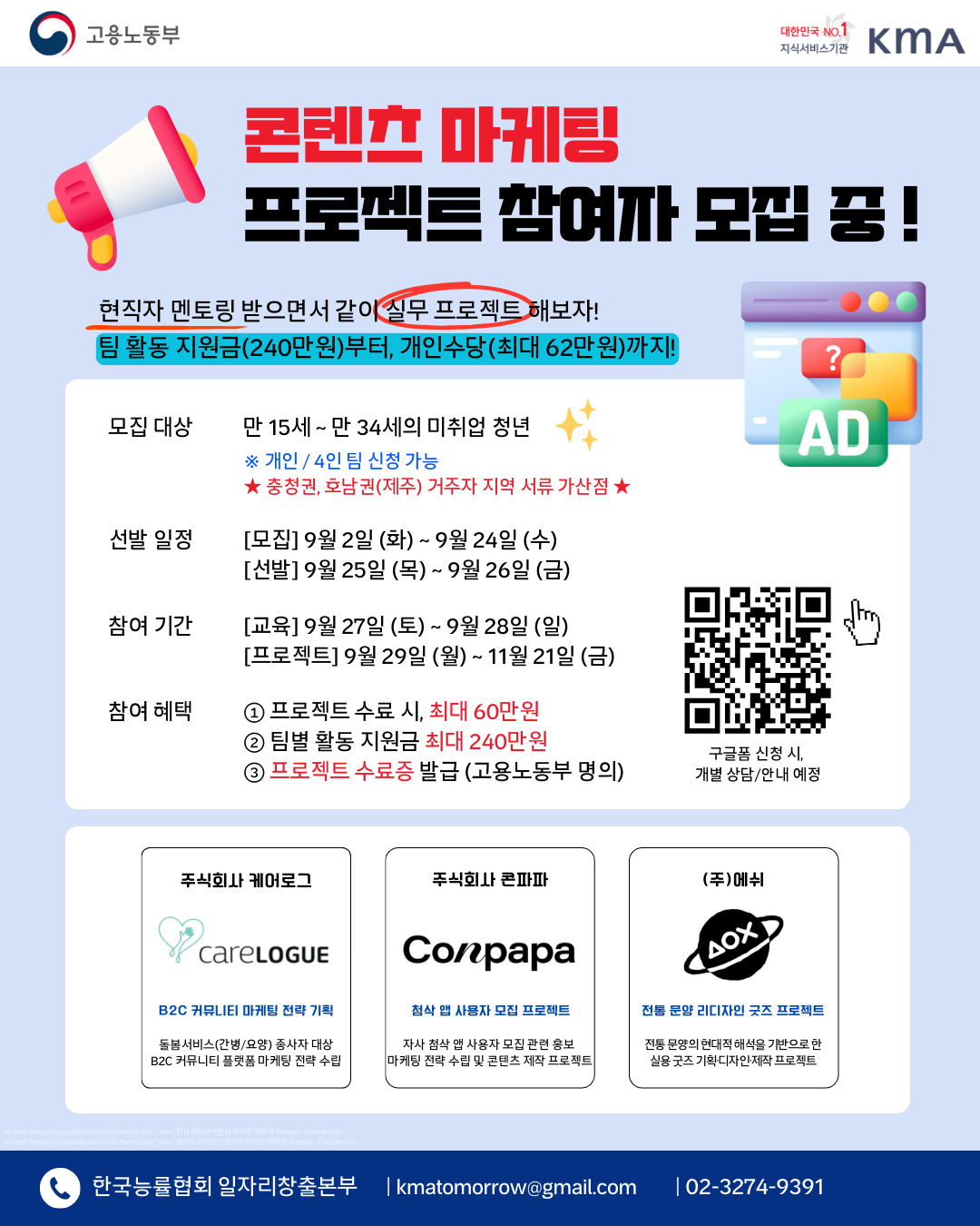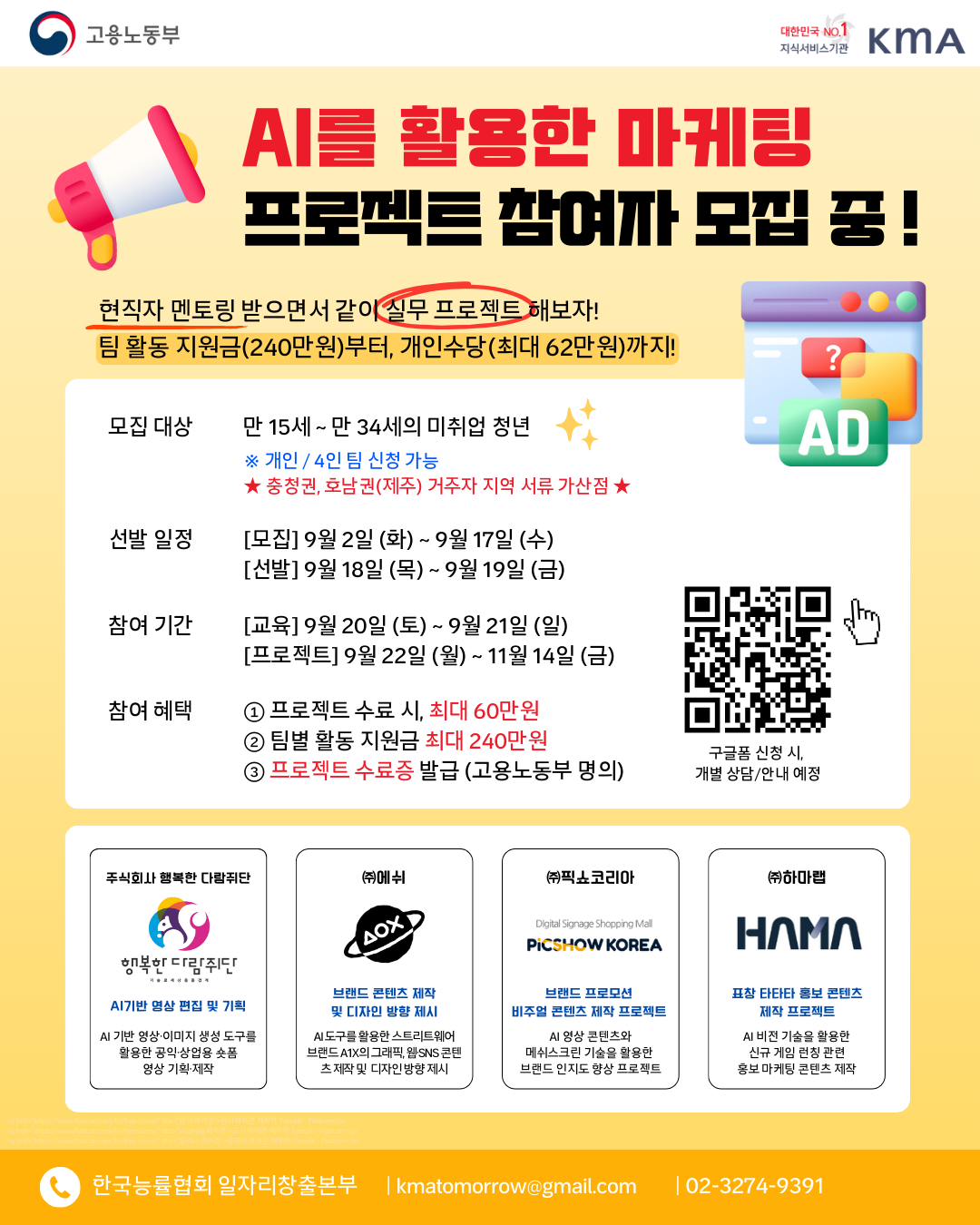 - [취업] [한국능률협회] 청년 일경험 프로젝트 - 마케팅 분야 모집 안내