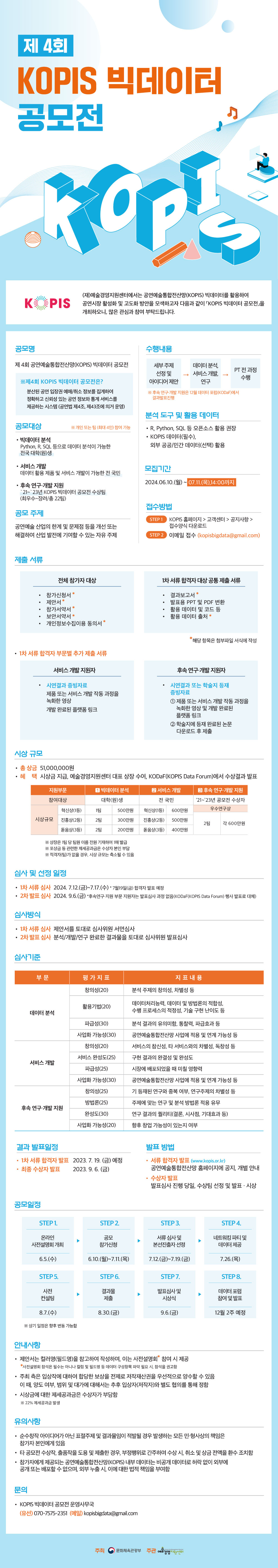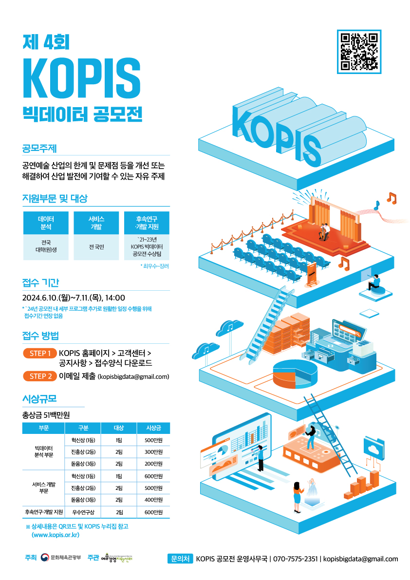 - [공모전] [예술경영지원센터] 제 4회 KOPIS 빅데이터 공모전 참가자 모집 (~7.11)