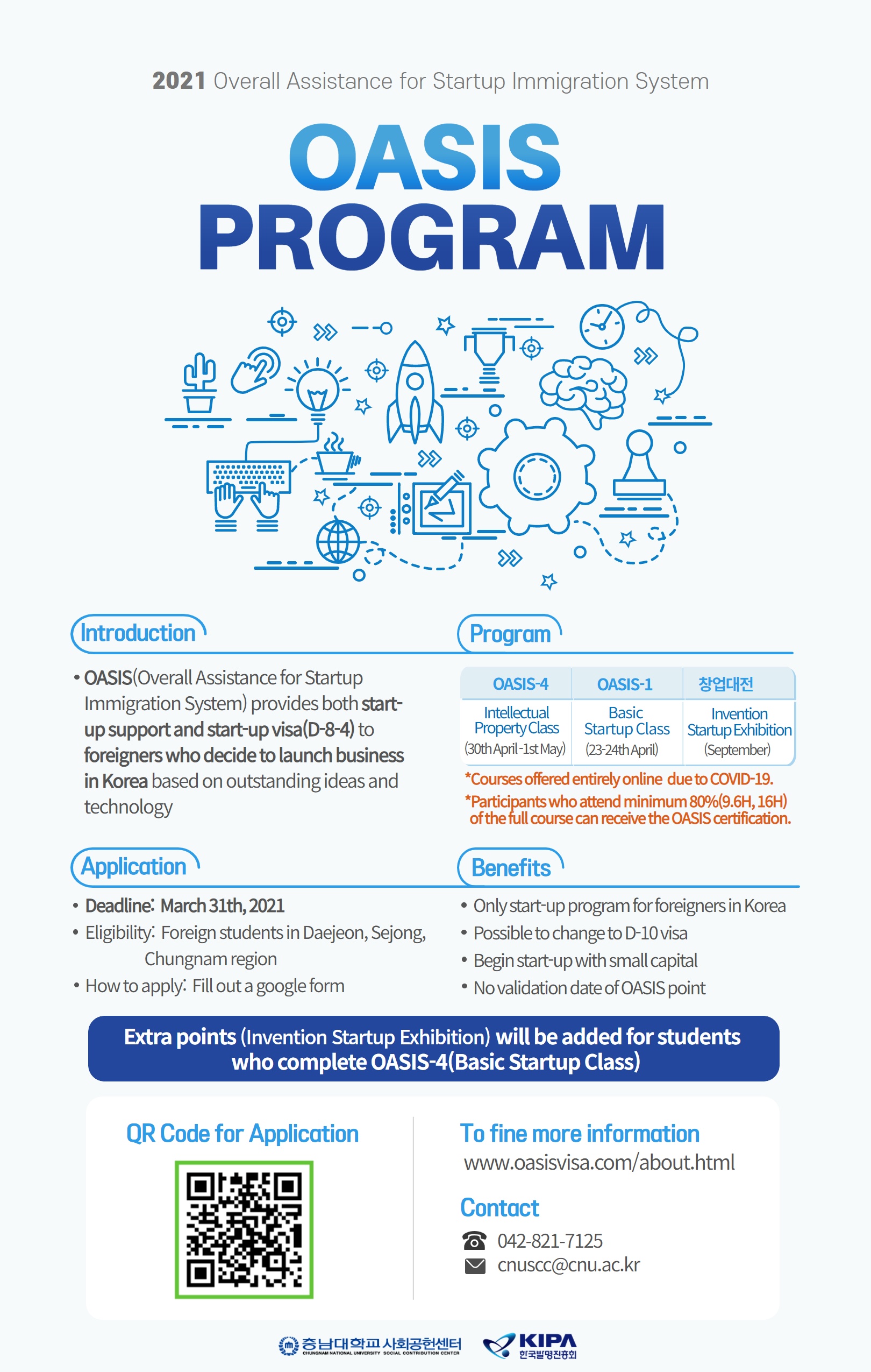 - 창업이민 인재양성(OASIS) 프로그램 참여학생 모집 안내