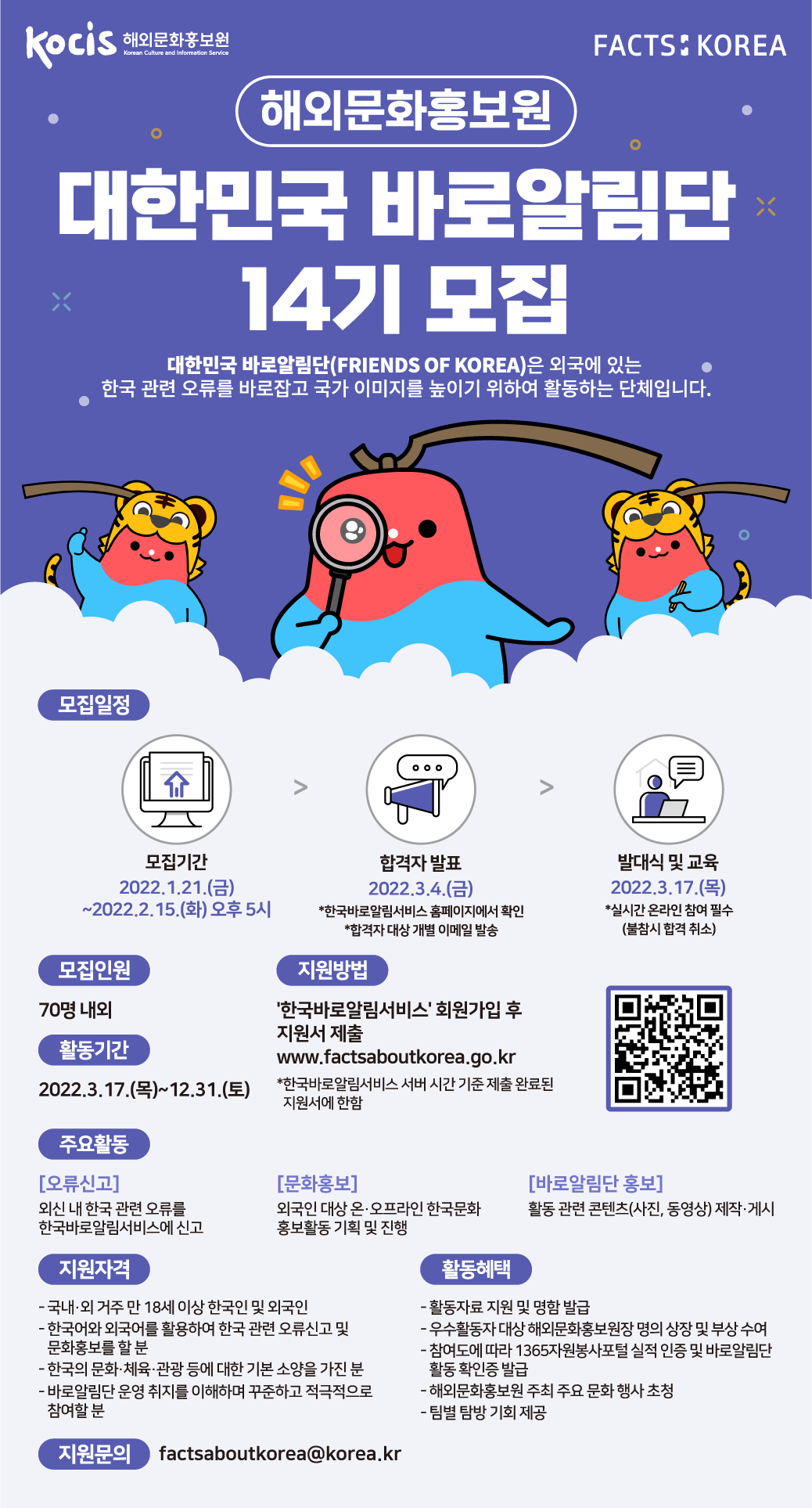 - 제14기 '대한민국 바로알림단(Friends of Korea)' 모집 안내