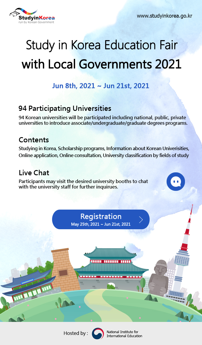 - [국립국제교육원] 2021 지자체와 함께하는 한국유학박람회 (www.studyinkorea.go.kr) 안내