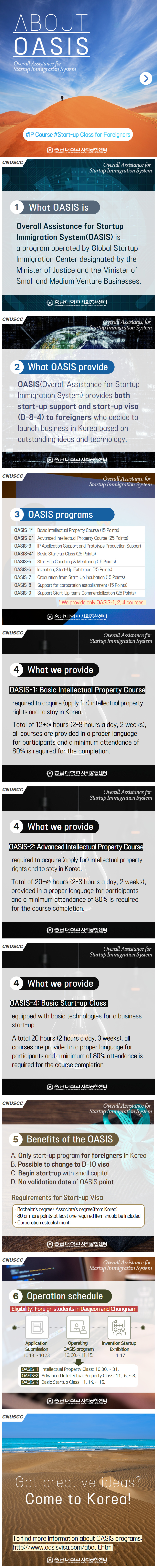 - OASIS(창업이민 인재양성) 프로그램 참여학생 모집 안내