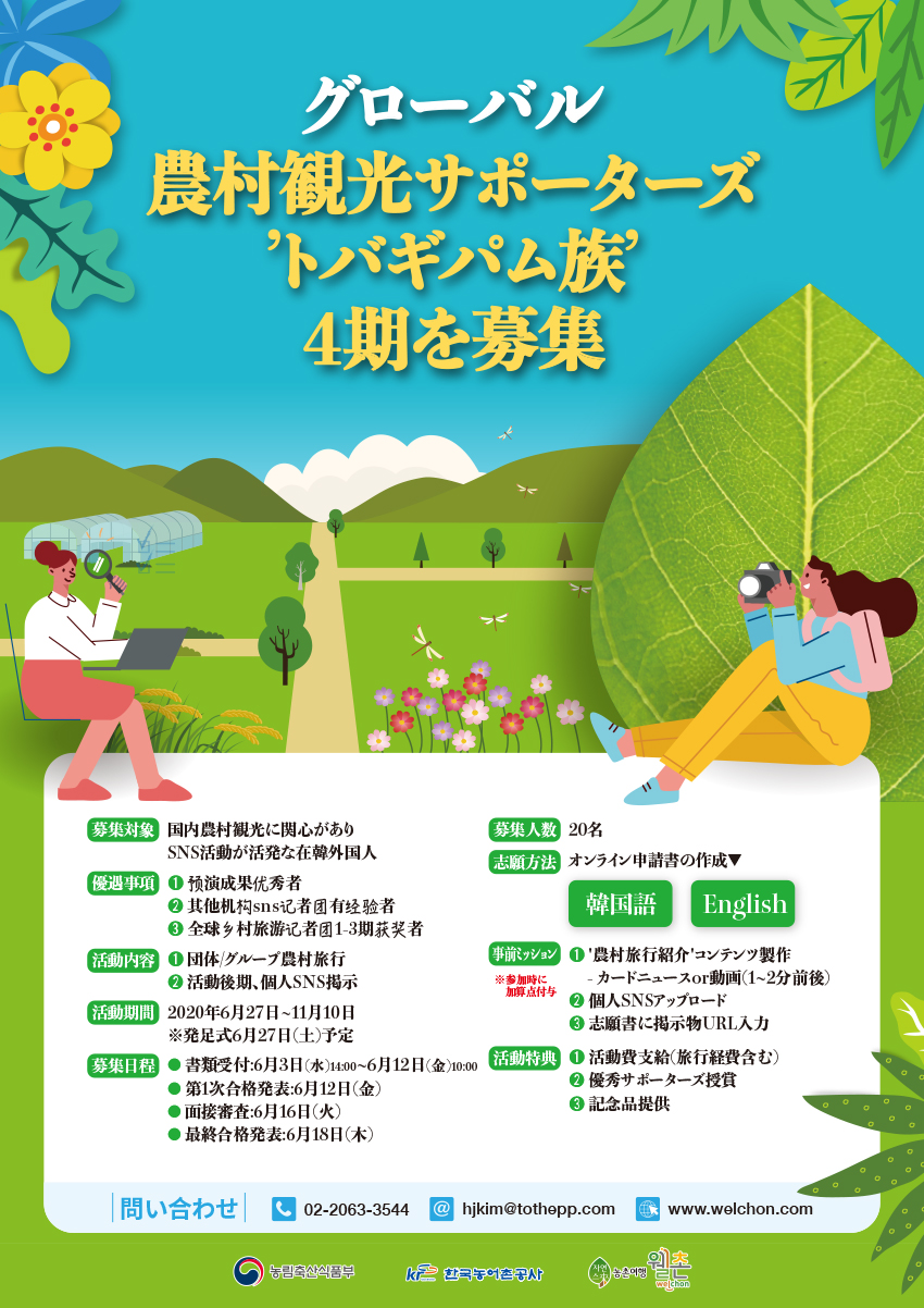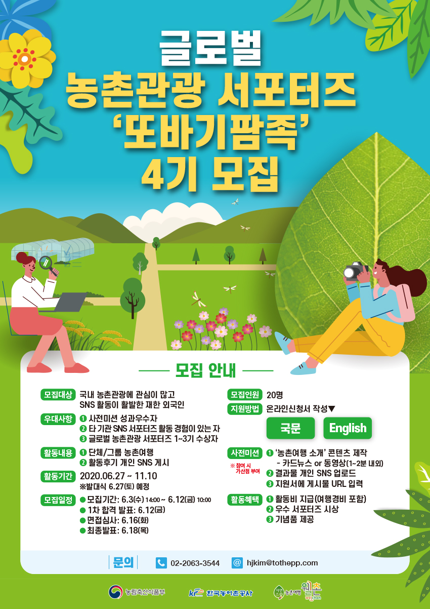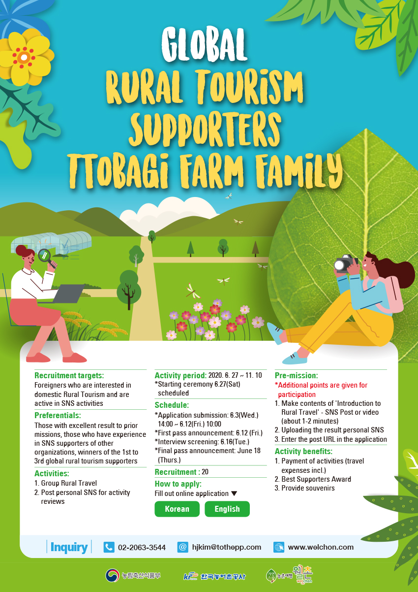 - 2020년 글로벌 농촌관광 서포터즈(또바기팜족 4기) 모집 안내