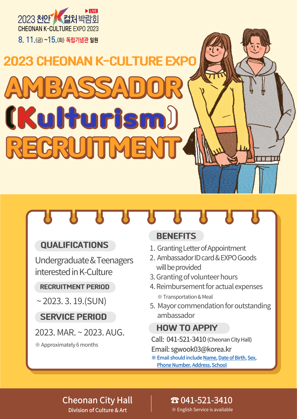- [천안시] 「2023 천안 K-컬처 박람회 서포터즈 모집」유학생 대상 안내